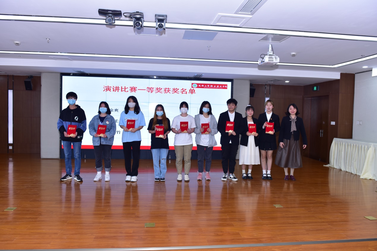 随后,11名进入演讲决赛的同学依次上台展示,经过激烈地角逐,财贸管理学院温柔、刘雨竹和电气工程学院涂爽三位同学获得一等奖。