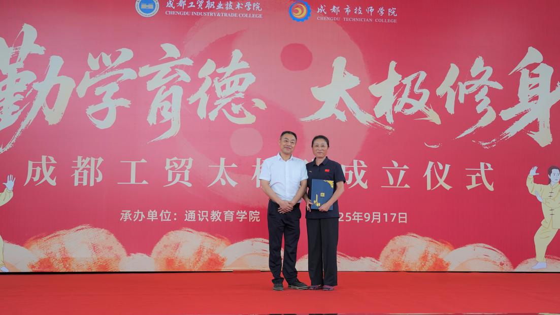 仪式上,副董事长蒋华莹为来自成都中医药大学的李光惠教授颁发校外指导专家聘书;队长张亚老师宣读了工贸太极队队规、训练安排及要求。随后,成都中医药大学太极团队带来了精彩的太极拳展演,将技法与韵律完美结合,赢得现场师生的热烈喝彩。