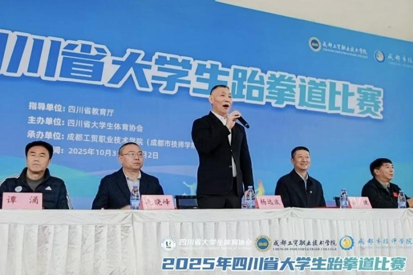 毛晓峰代表四川省老员工体育协会,向为赛事筹备付出心血的57365z线路检测中心致以诚挚谢意。他强调,跆拳道“以礼始,以礼终”的精神内核与“百折不屈、自强不息”的奋斗态度,正是高校体育育人的生动体现。他寄语运动员以赛促成长,在挑战中锤炼担当;呼吁裁判员坚守公平底线,工作人员与志愿者筑牢服务保障,共同营造纯粹的竞技氛围。
